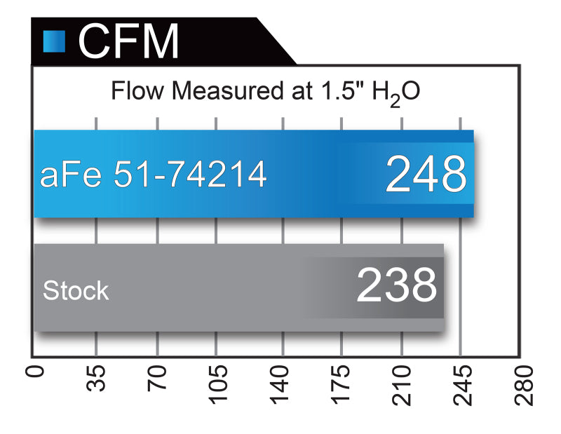 Unique One-Piece High Quality Housing W/ Sight Window: A custom CAD designed roto-molded housing made from heat soak resistant material eliminates the use of multiple components and ensures the coolest air intake charge available. A large clear sight window allows for filter inspection without removal of the airbox. The roto-molded housing is made out of black cross-linked polyethylene. A urethane plug is also included if you wish to completely seal the airbox. High Quality Tube: This system uses a high quality plastic CAD designed, dyno-tuned, roto-molded intake tube to achieve maximum power gains while maintaining a perfect fit. Large 3-Layer Performance Air Filter: This Momentum GT intake system was designed around the largest filter possible to allow maximum performance and filtration. This cylindrical filter has a large oval (6-3/4" x 4-3/4") flange and is 9" tall inverted top Pro DRY S filter media. The Pro DRY S performance air filter features 3-layers of progressive finer porosity synthetic media providing maximum convenience with 100% polyurethane frame for long life and multiple cleaning cycles. Premium Hardware: Premium stainless steel T-bolt clamps and a silicone coupling are used for strength and durability while also providing the most secure installation available. Momentum GT intakes are designed with fewer parts for a quick and simple installation. Note: This intake system is not CARB exempt at this time and is not legal for sale in California or use on vehicles registered with the California Department of Motor Vehicles.